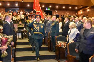В ходе праздничного вечера состоялось вручение государственных наград. За проявленные мужество и отвагу ряд военнослужащих, в том числе находящихся в отставке, были удостоены орденов и медалей. Среди наград – орден Мужества, медали Жукова, а также медаль ордена «За заслуги перед Отечеством» II степени с мечами.